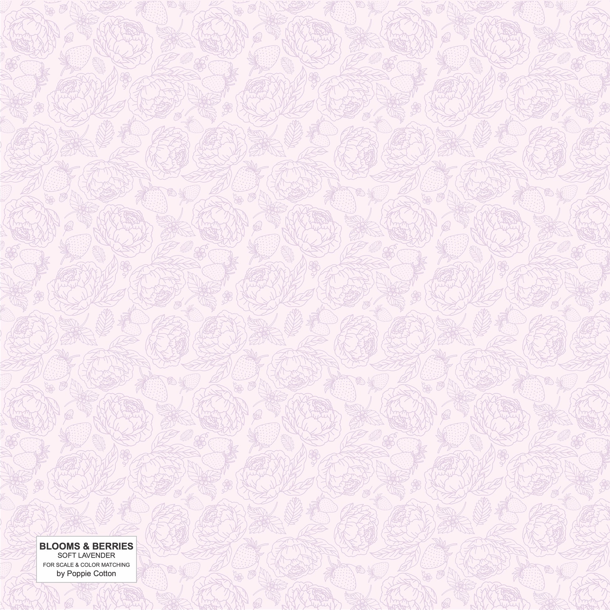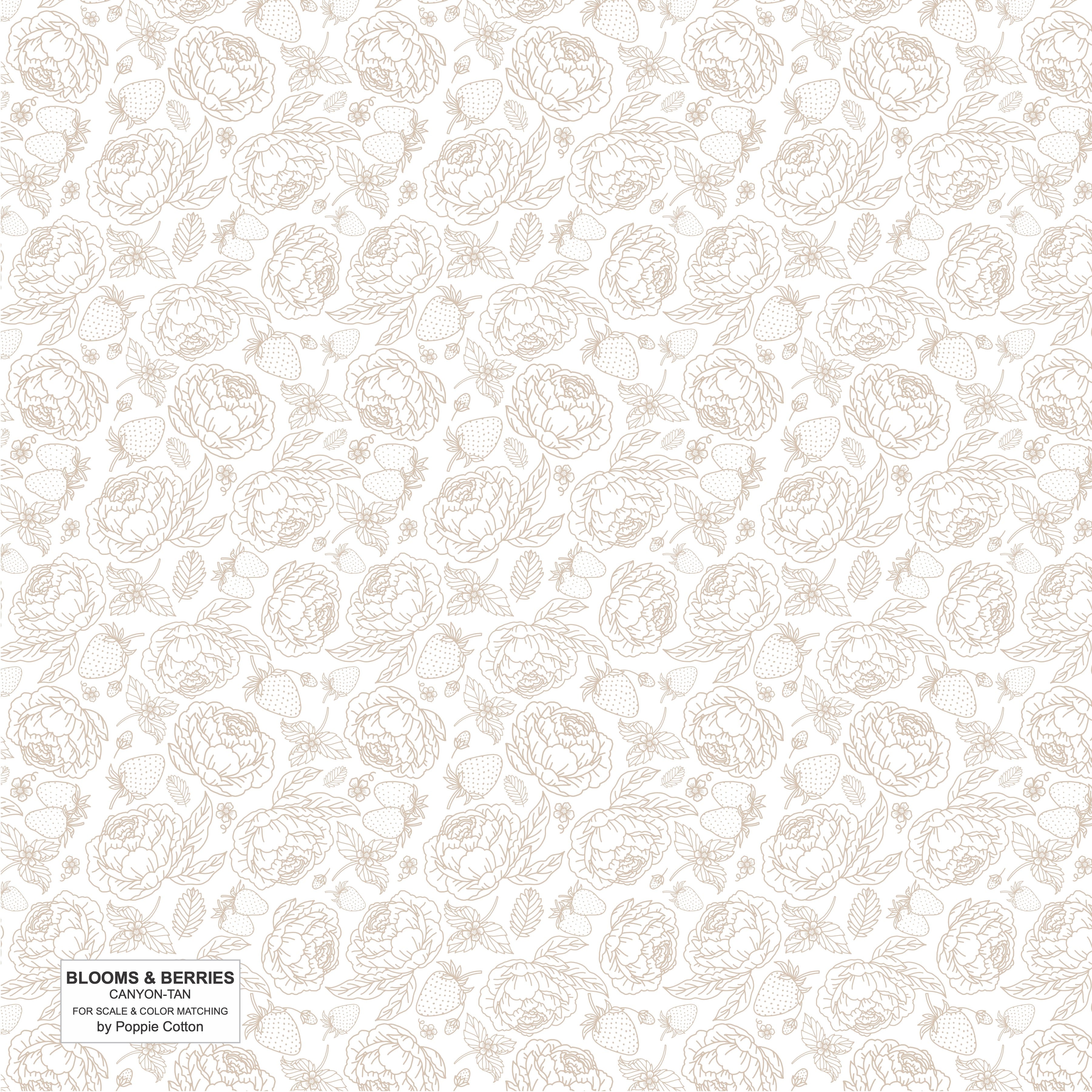 A low volume design with flowers and strawberries in 6 Poppie Cotton colors. Available in 15-yard bolts and a fat quarter bundle of 6. They are included in Poppie's Basics.