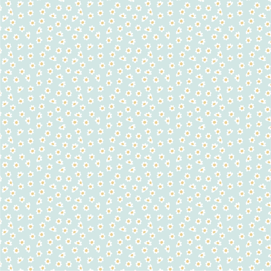 Delicate blooms dancing across a blue background.