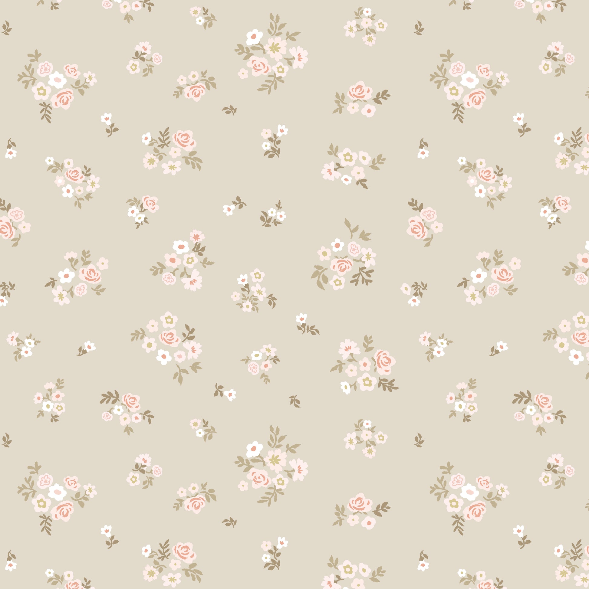 Delicate briar rose bunches tossed across a sage background.